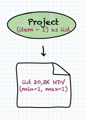 Projections (l.item – 1 AS iid) are similar to filters, except that, of