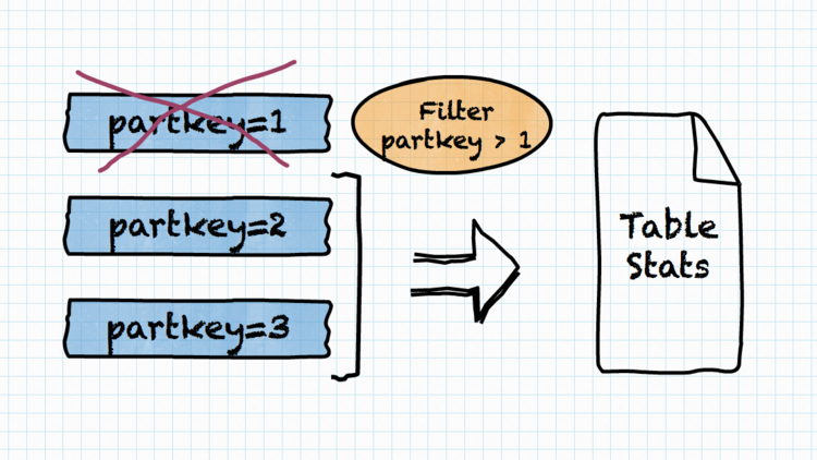 As explained in “Table statistics” section, the connector which defines the table is responsible for providing the table statistics. Furthermore, the connector will be informed about any filtering conditions that are to be applied to the data read from the table. This may be important e.g. in the case of Hive partitioned table, where statistics are stored on per-partition basis. If the filtering condition excludes some (or many) partitions, the statistics will consider smaller data set (remaining partitions) and will be more accurate.