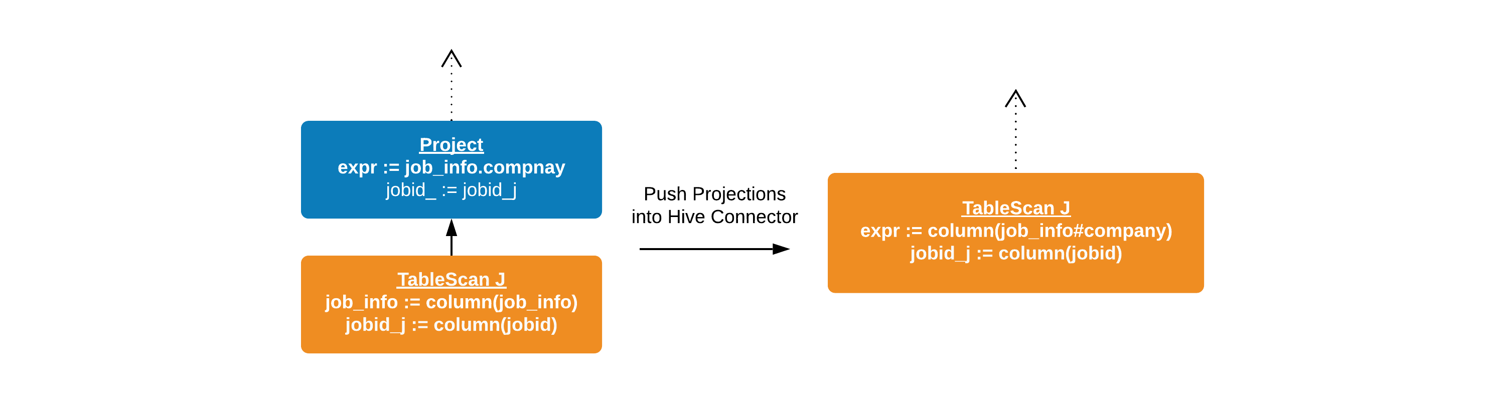 connector as “virtual” (or “projected”) columns. The query plan is modified to