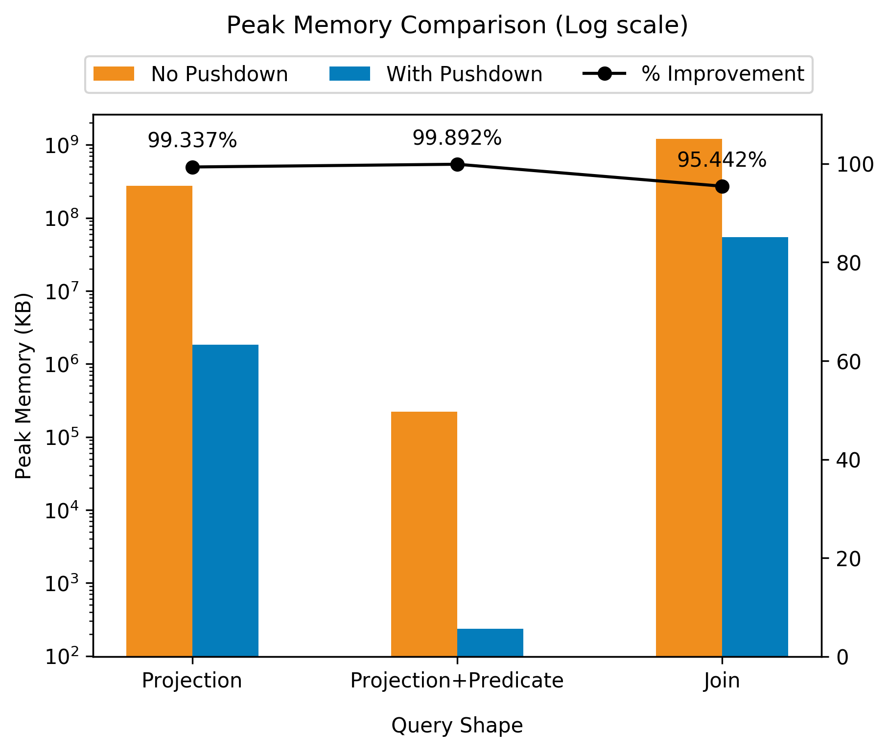 Another future improvement will be the pushdown of predicates on subfields for data stored in Parquet format. Although the pruning of nested fields occurs with Parquet, the predicates are not yet pushed down into the reader.