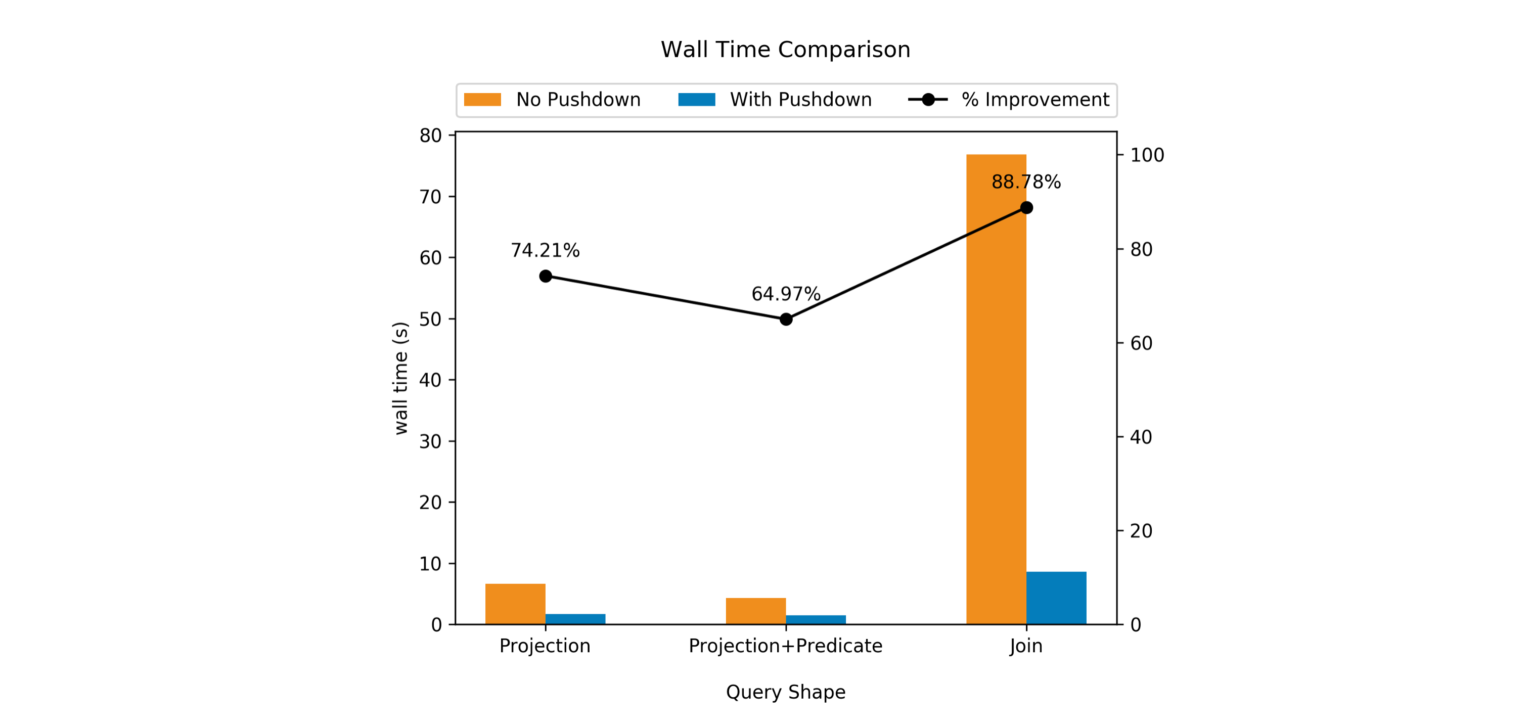 presence of dereference pushdown. Query wall times also reduce considerably,