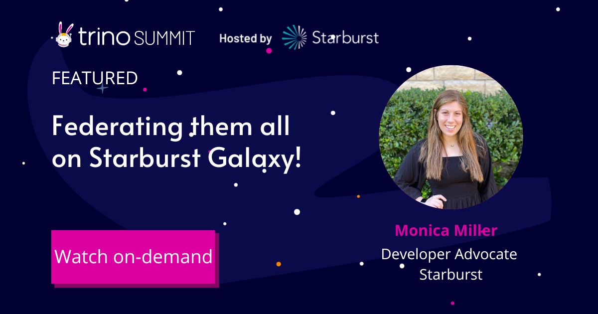 If you thought this talk was interesting, consider sharing this on Twitter, Reddit, LinkedIn, HackerNews or anywhere on the web. Use the social card and link to https://trino.io/blog/2022/12/14/trino-summit-2022-starburst-recap.html. If you think Trino is awesome, give us a 🌟 on GitHub !
