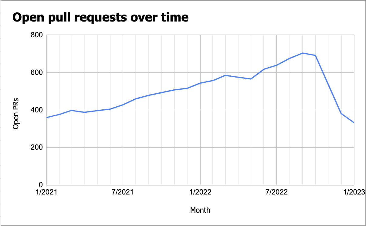 At some point in the lifecycle of a successful open source project, it reaches a point where the number of incoming pull requests (PRs) outpace the project’s ability to get code merged. It happens for a huge variety of reasons, including developers moving on to other projects before tying up every loose end, reviewers who miss a request for review, and because some stagnant PRs were never going to happen and should have been closed two years ago. The GitHub notification system doesn’t do anyone any favors, either. Having too many open PRs is a problem for a project, because they make it harder to tell what is being worked on and what may as well be dead code walking.