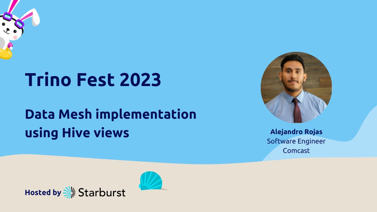 At Comcast, data is used in a data mesh ecosystem, with a vision where users can discover data and request data through a self-service platform. With federation, various tools, and the ability to create, read, and write data with different platforms, it’s a full-blown data mesh. So how do you build that? With Trino, of course, and with the power of Hive views. Tune into the 10-minute lightning talk that Alejandro gave at Trino Fest to learn more about how Comcast pulled it off.