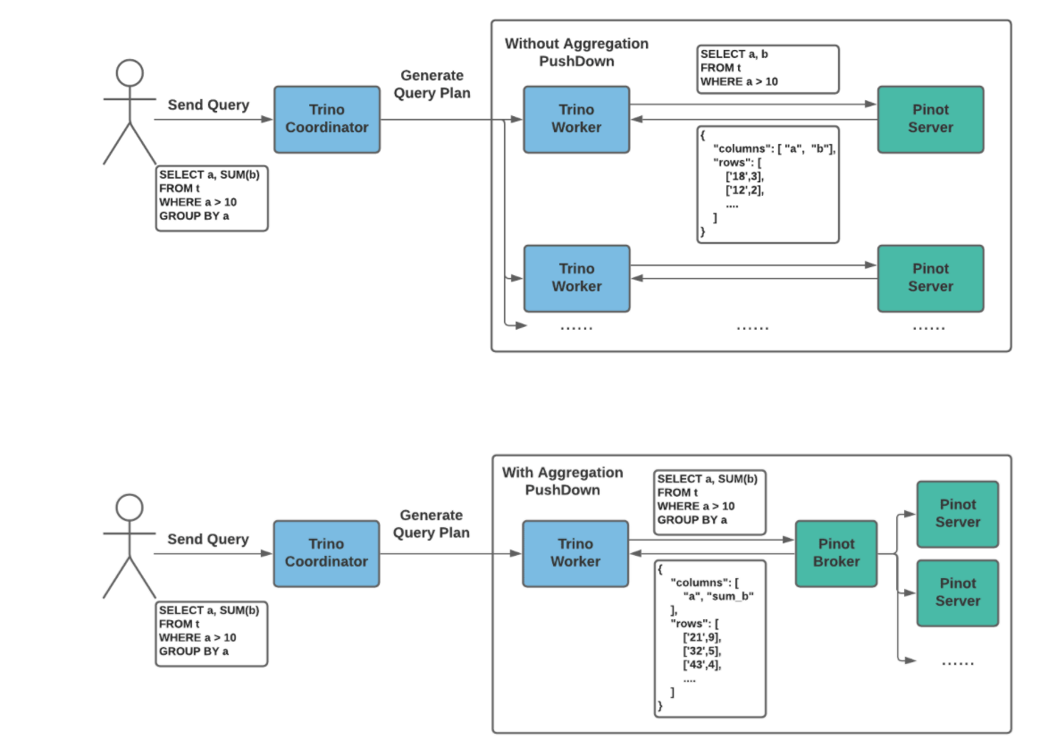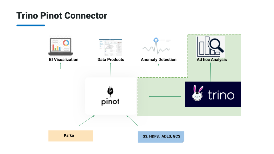 While Trino is not as fast as Pinot, it is able to handle a broader set of use cases like performing broad joins over open data formats in data lakes. This is what motivated work on the Trino Pinot connector. You can have the speed of Pinot, while having the flexibility of Trino.