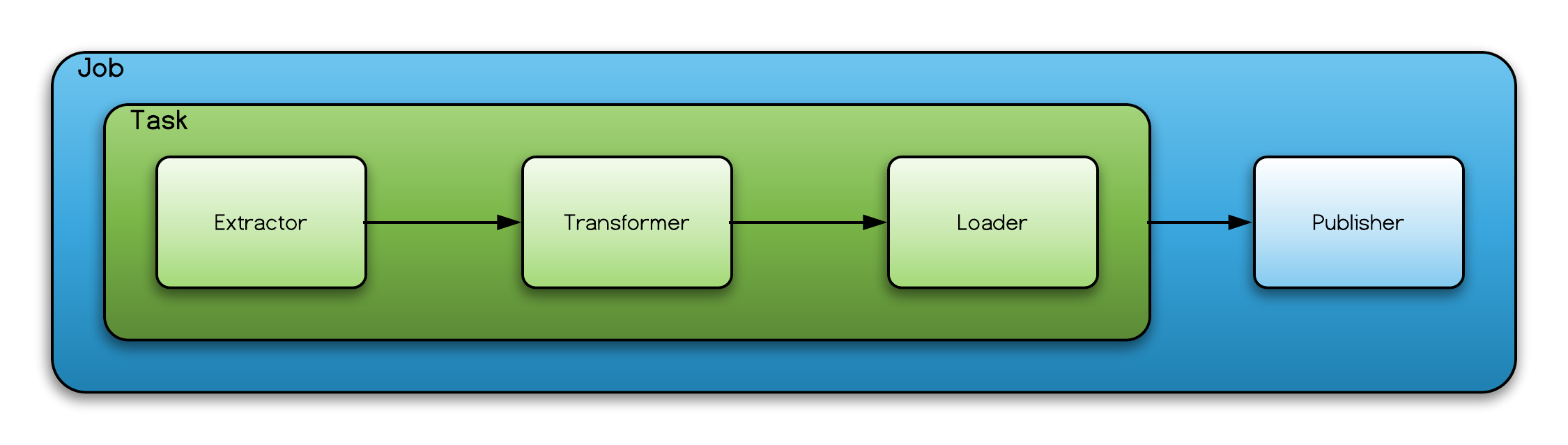 Each job contains an ETL task. The task must define an extractor and a loader, and optionally a translator. You can see example configurations for different extractors on the website, like the example for the HiveTableMetadataExtractor.