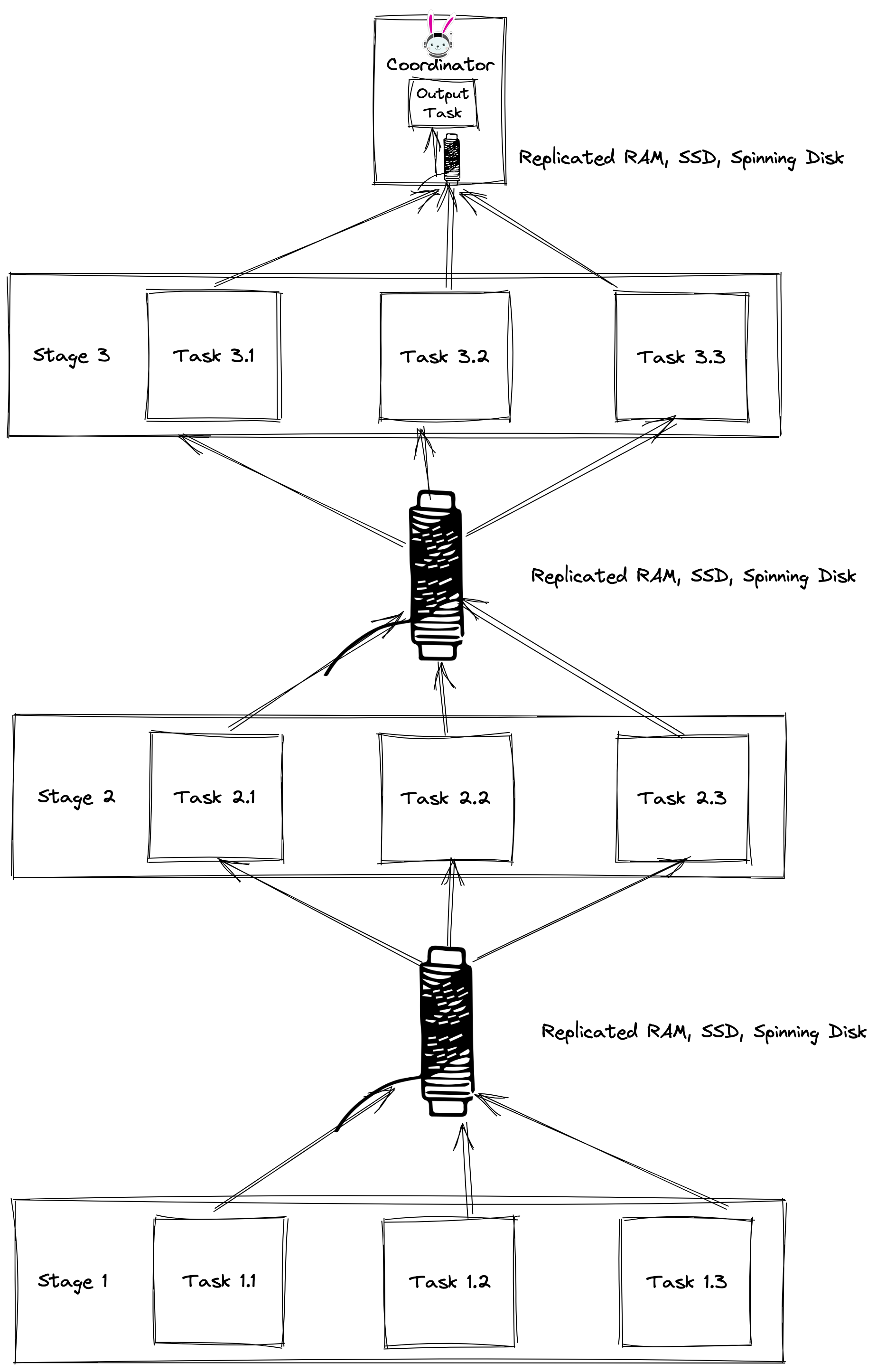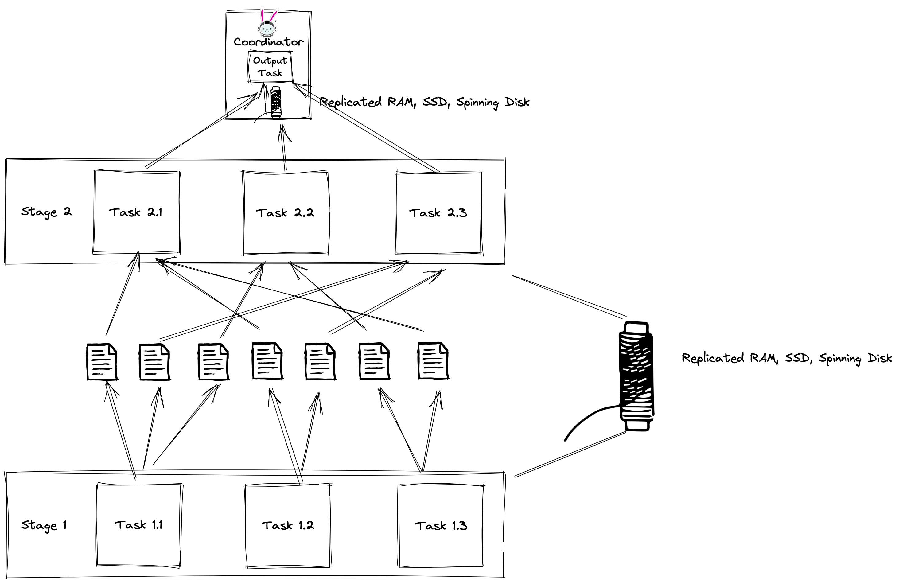 This all sounds incredible, but it begs the question of how to best implement these buffers? Enabling task-level retry requires us to store intermediate exchange data to a “distributed buffer”. In order to minimize the level of disturbance buffering has on the query performance, there needs to be careful design consideration.