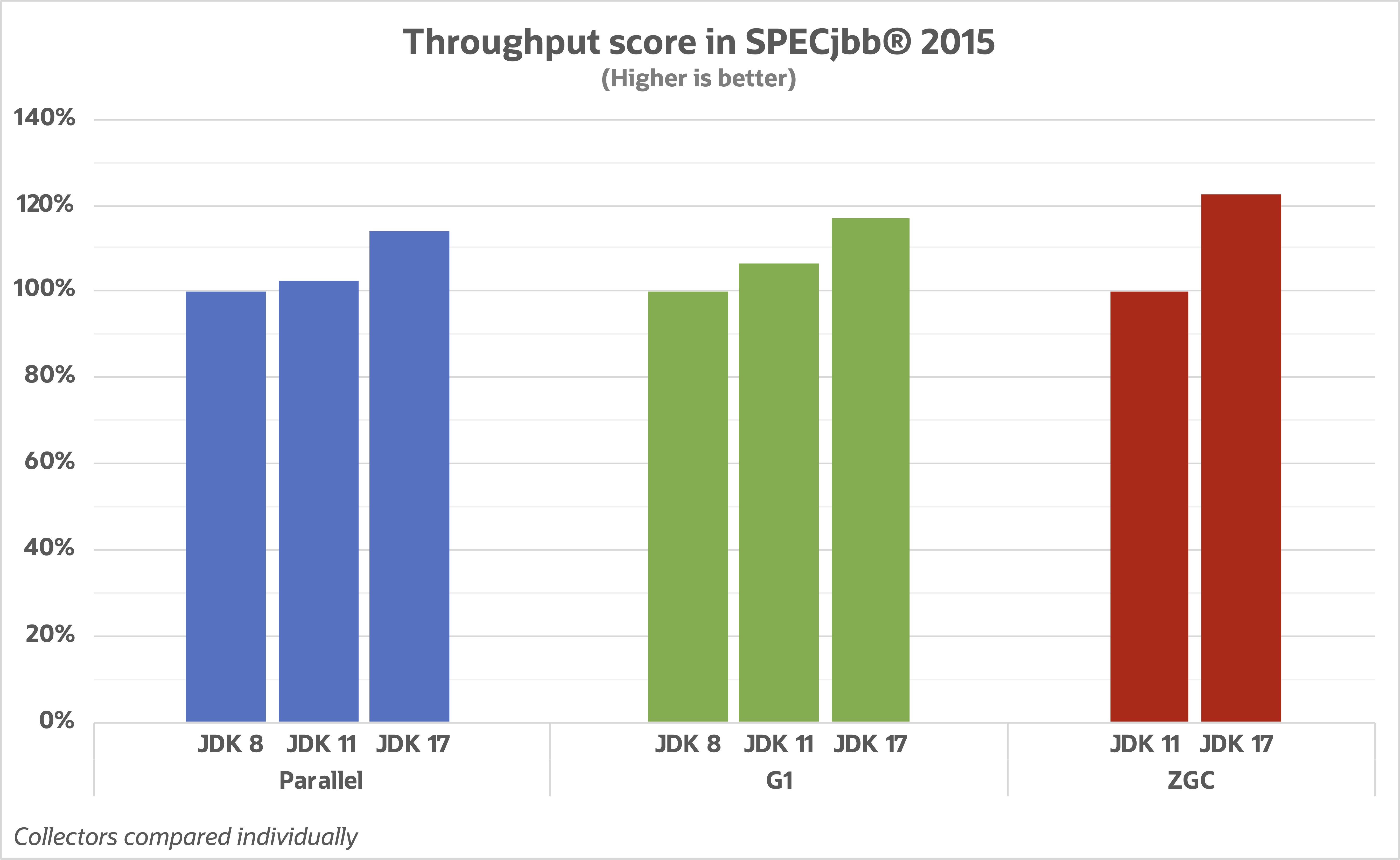 In a fantastic writeup and benchmark by Stefan Johansson, they ran the SPECjbb® 2015 to evaluate the improvements of different garbage collectors over different LTS versions.