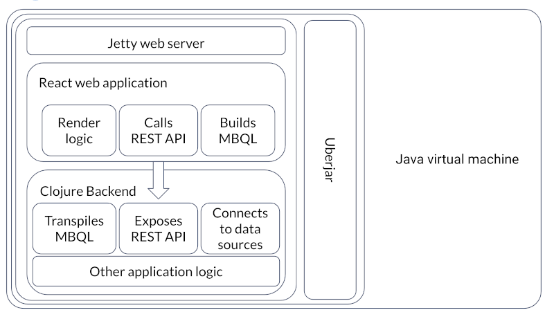 Metabase is an open source project licensed under the GNU Affero General Public License (AGPL) license. It is written in Clojure and therefore runs on the Java virtual machine.
